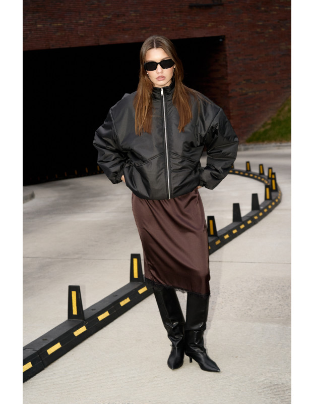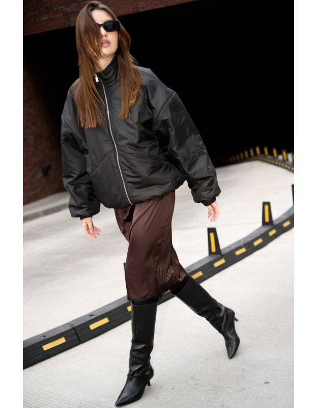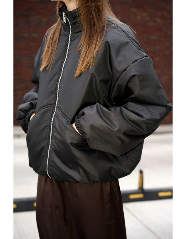 Бомбер черный уже который год становится хитом продаж в сезон очень/весна. Внутри бомбера воздушный синтепон 150 грамм, вискозная подкладка, а снаружи водоотталкивающая курточная ткань. В нем комфортно сейчас и будет тепло до 0 градусов, а с теплым свитером или худи можно носить и дольше.