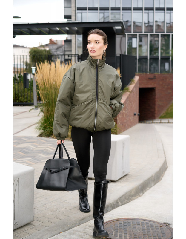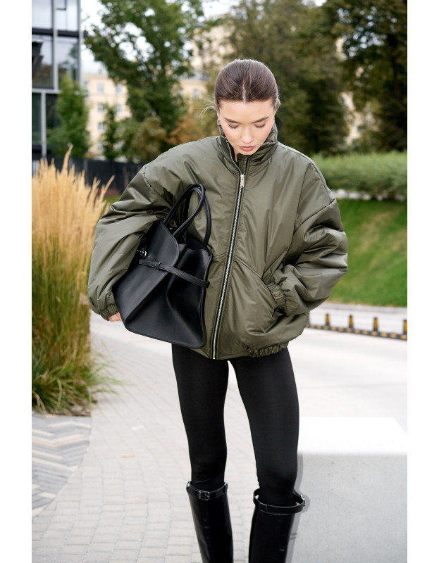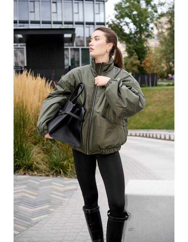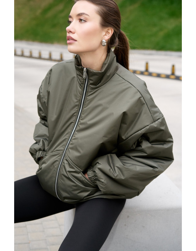 Бомбер в цвете хаки универсальная вещь на любой сезон. Подходит на температуру до 0, но с теплым низом можно носить и дольше. Наполнитель синтепон нового поколения, легкий, воздушный, идеален и прост в уходе.