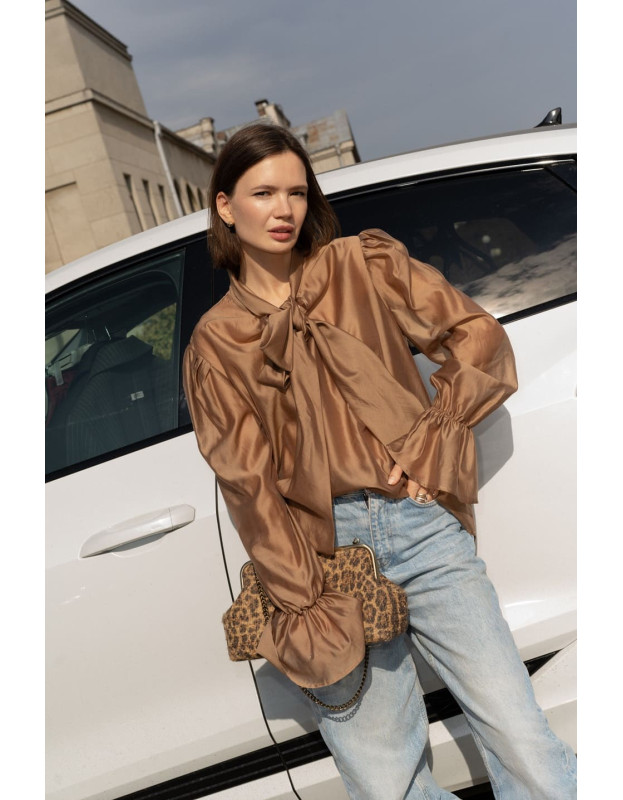 Блузка из тенсела с нежным длинным бантом, который можно носить развязанным.