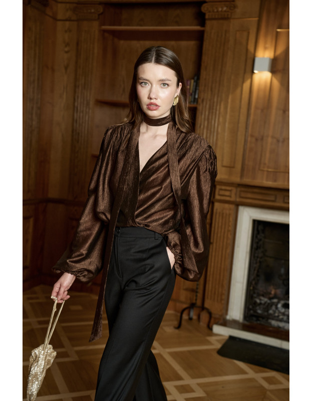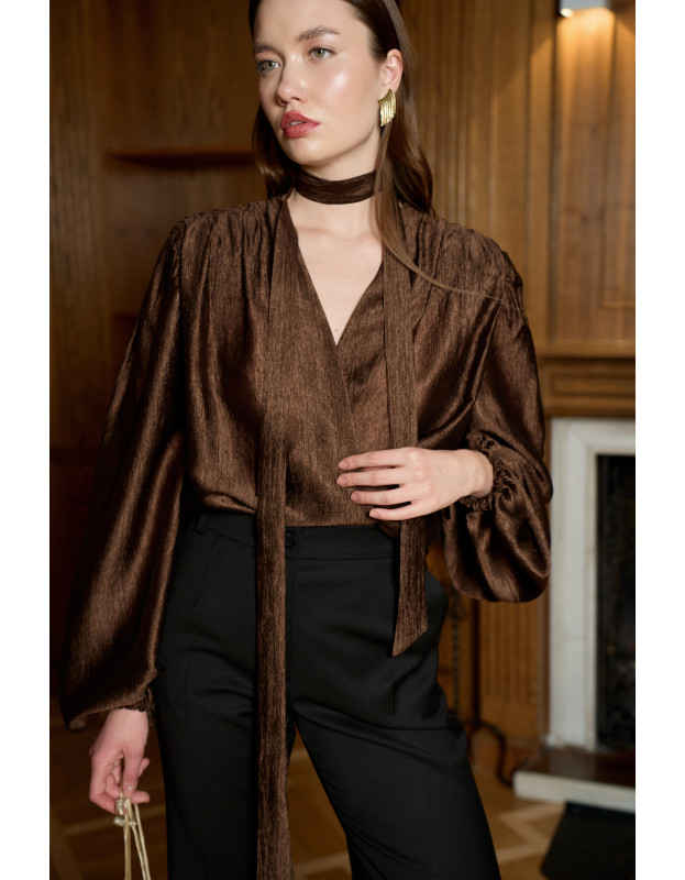 Универсальная блуза свободного кроя с поясом. Мягкий запах и струящаяся ткань создают удобный и стильный образ как на каждый день, так и на праздник. Выполнена в трех цветах: черный, коричневый и бежевый. DARK HORSE не стремится быть ярче всех, но навсегда останется в памяти. DARK HORSE не стремится быть ярче всех, но навсегда останется в памяти.