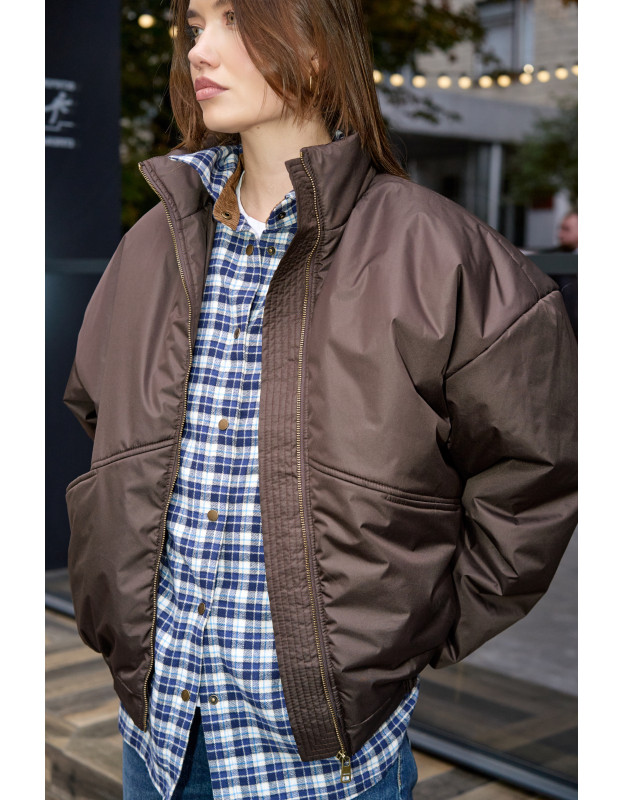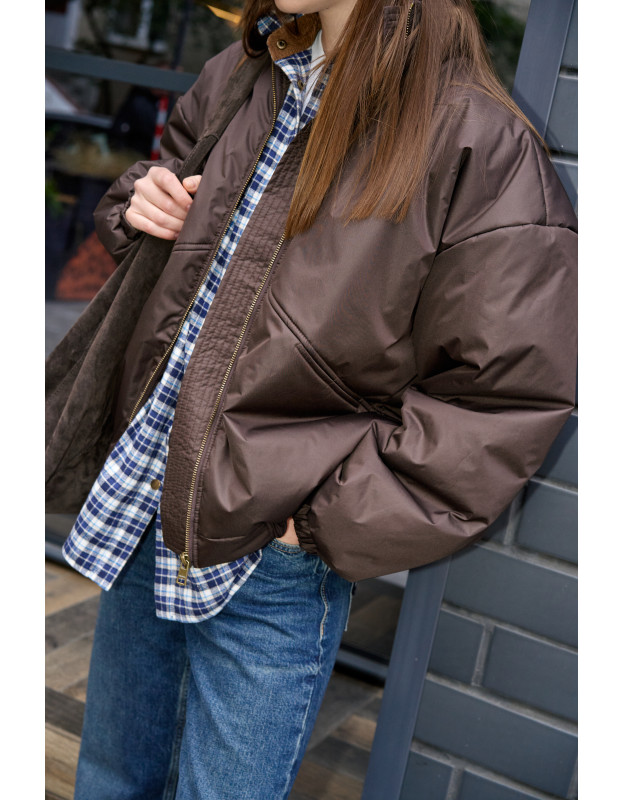 Бомбер шоколадный уже который год становится хитом продаж в сезон очень/весна. Внутри бомбера воздушный синтепон 150 грамм, вискозная подкладка, а снаружи водоотталкивающая курточная ткань. В нем комфортно сейчас и будет тепло до 0 градусов, а с теплым свитером или худи можно носить и дольше.