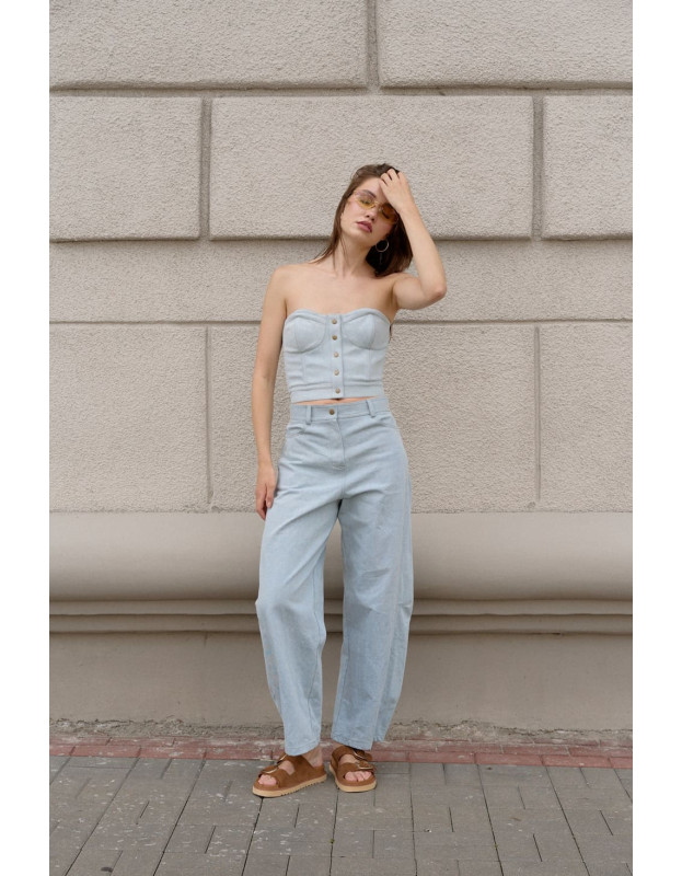 Брюки-бананы Denim имеют мягкую посадку и свободный крой в виде 90-х для комфорта и стиля. Светло-голубой оттенок создает тот самый винтажный эффект. Удобная высокая такая подчеркивает силуэт, сохраняя расслабленный крой, а качественный деним держит форму, не теряя легкости.