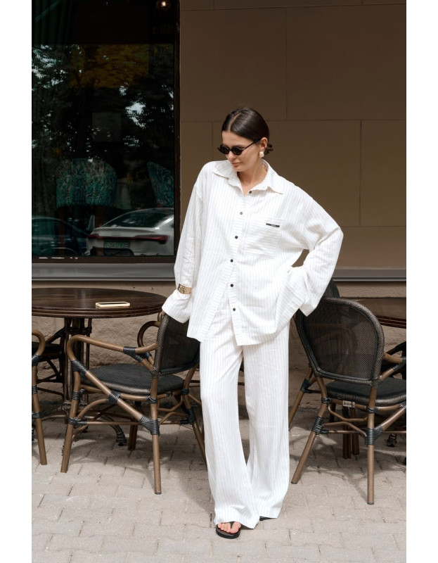 Брюки в полоску летние молочные в пижамном стиле. Невесомые и легкие, идеальны для лета. Брюки можно купить в комплекте с рубашкой или использовать как самостоятельный низ, сочетая с рубашкой, футболкой или вашими любимым стилистическим приемом.