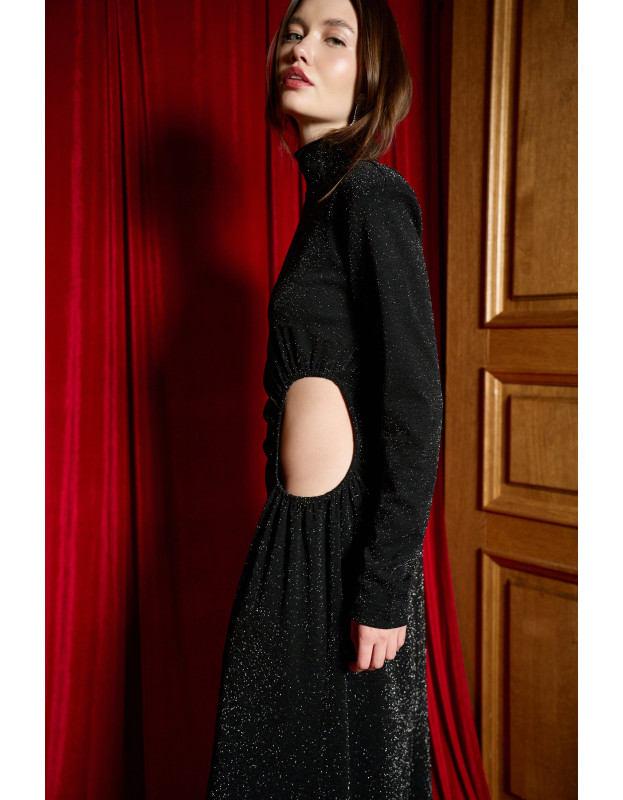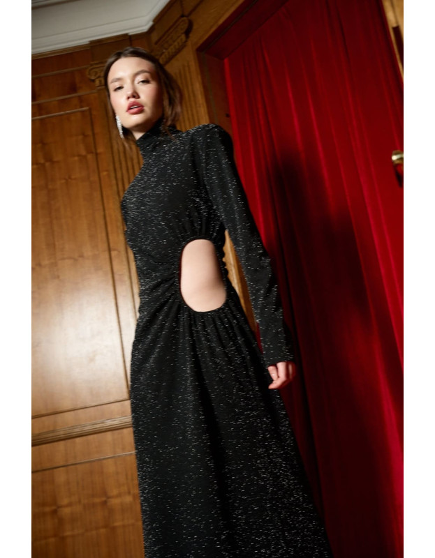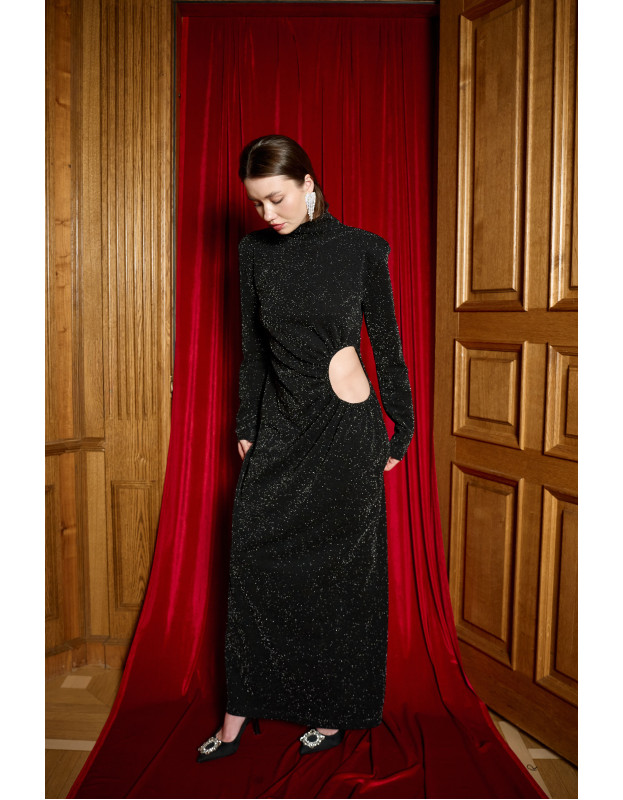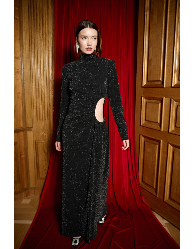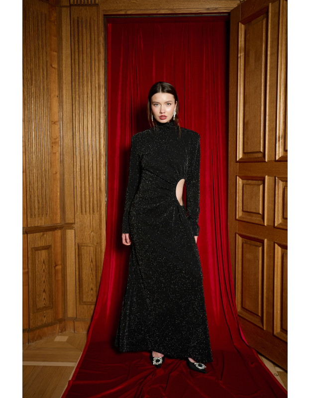 Главная ставка вечера. Это платье — платье Hollywood. Эффектное платье в пол с вырезом на талии. Оно выполнено в базовом черном и ярким красном цветах. А сложный крой создают запоминающийся вечерний образ. DARK HORSE не стремится быть ярче всех, но навсегда останется в памяти.