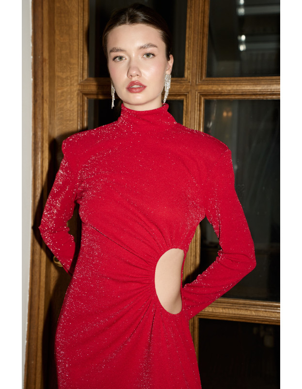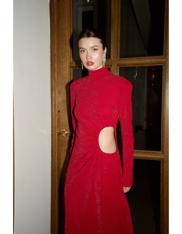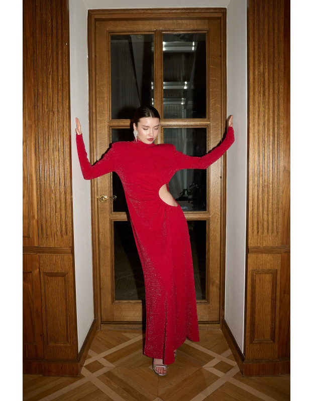Главная ставка вечера. Это платье — платье Hollywood. Эффектное платье в пол с вырезом на талии. Оно выполнено в базовом черном и ярким красном цветах. А сложный крой создают запоминающийся вечерний образ. DARK HORSE не стремится быть ярче всех, но навсегда останется в памяти.
