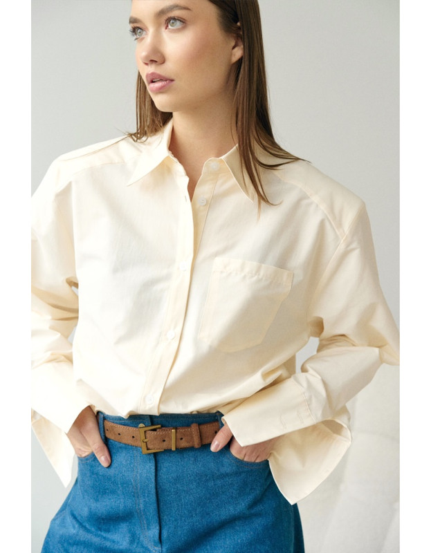 Архитектура для вашего гардероба. Эта рубашка — не просто вещь, а конструктор силуэта. Твердые увеличенные плечики создают геометричный, почти сценический эффект, заявляя о вашем стиле громко и без компромиссов.