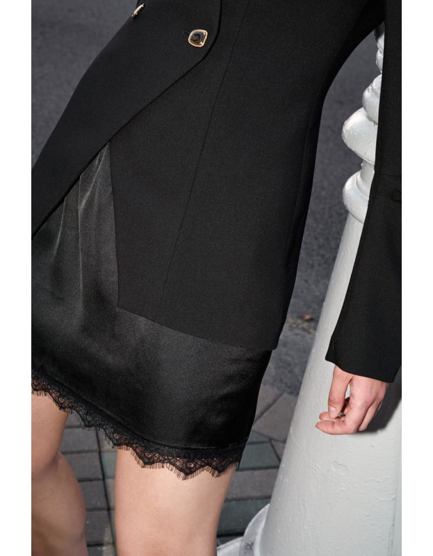 Смелый, чувственный и невероятно актуальный тренд нового сезона. Эта мини-юбка, вдохновленная эстетикой нижнего белья, выполнена из тонкой невесомой ткани с деликатными кружевными вставками. Идеальная транссезонная вещь: летом носите ее с воздушным топом, а с наступлением осени создавайте многослойные луки, комбинируя ее с объемными свитерами, кожухами и ботинками. Такой контраст хрупкой женственности и бунтарской дерзости — формула самого стильного образа года.