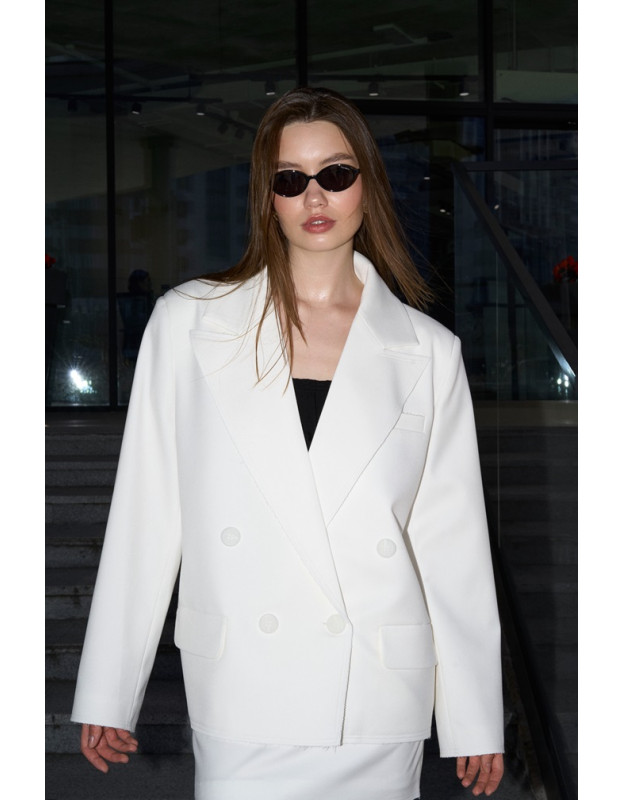 Жакет OVERSIZE — актуальна база летнего гардероба. Жакет имеет благородный белый оттенок для ваших свежих сочетаний. Легко комбинируется с любыми вещами в гардеробе. А безупречный крой нашего жакета делает ваши образы более воздушными.