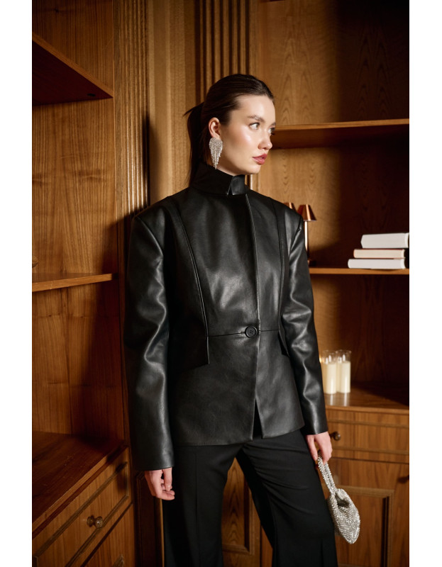 Классический приталенный жакет из экокожи. Выбирайте матовую модель для сдержанного образа или глянцевую — для более яркого акцента. Безупречно дополняет любую пару. DARK HORSE не стремится быть ярче всех, но навсегда останется в памяти.