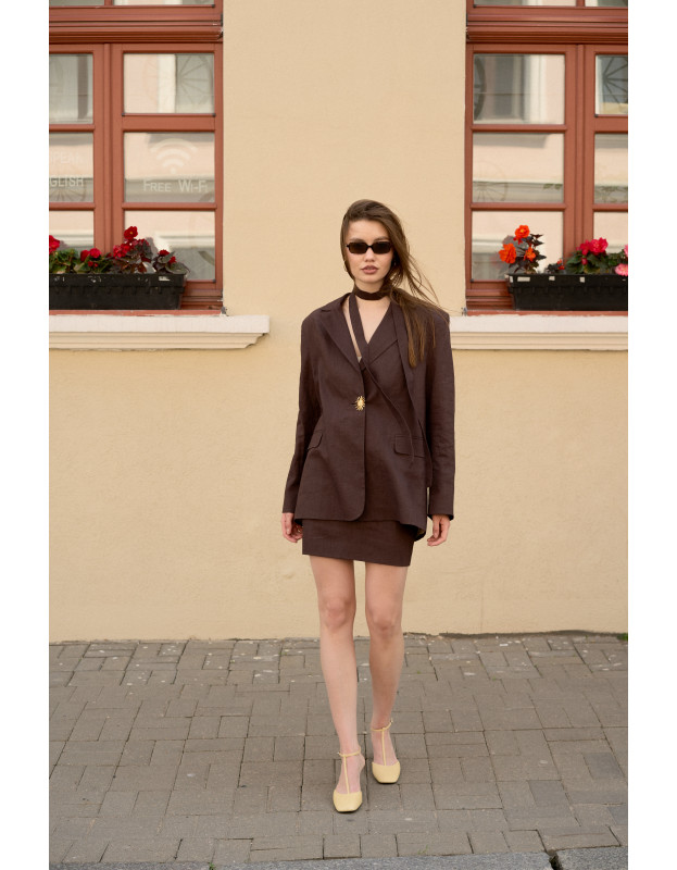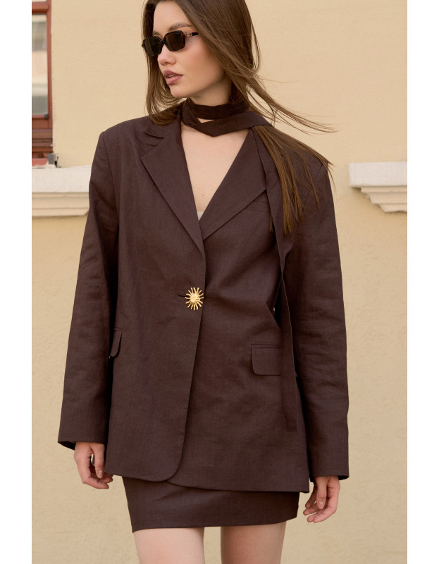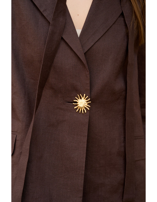 Идеальное дополнение к вашему гардеробу! Наш жакет из натурального льна в шоколадном оттенке — это комфорт и стиль в каждой детали. Акцентная пуговица добавляют изюминку, подчеркивая индивидуальность жакета. Легкий, дышащий материал обеспечивает приятную прохладу, а универсальный цвет легко сочетается с любыми брюками или юбками.